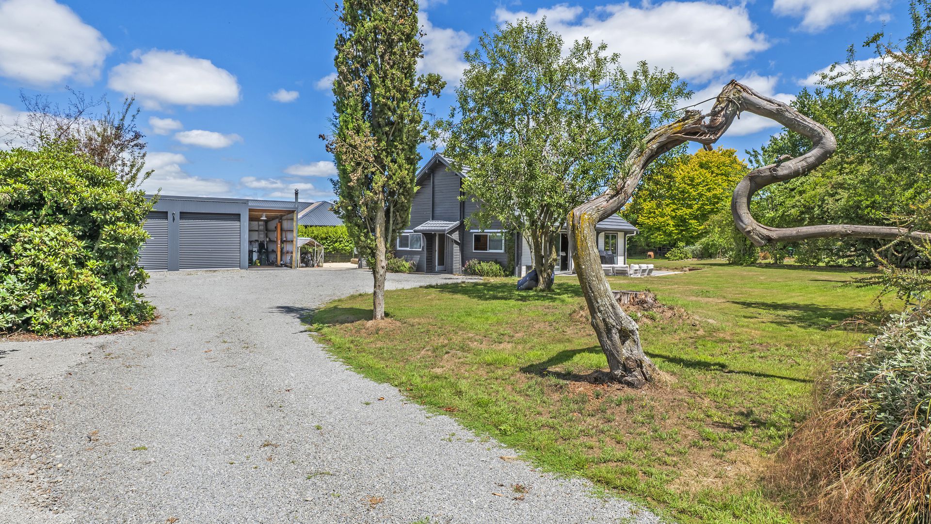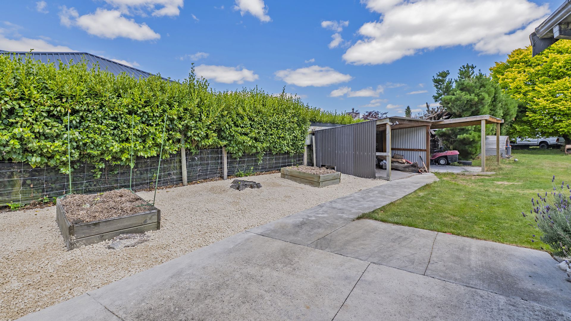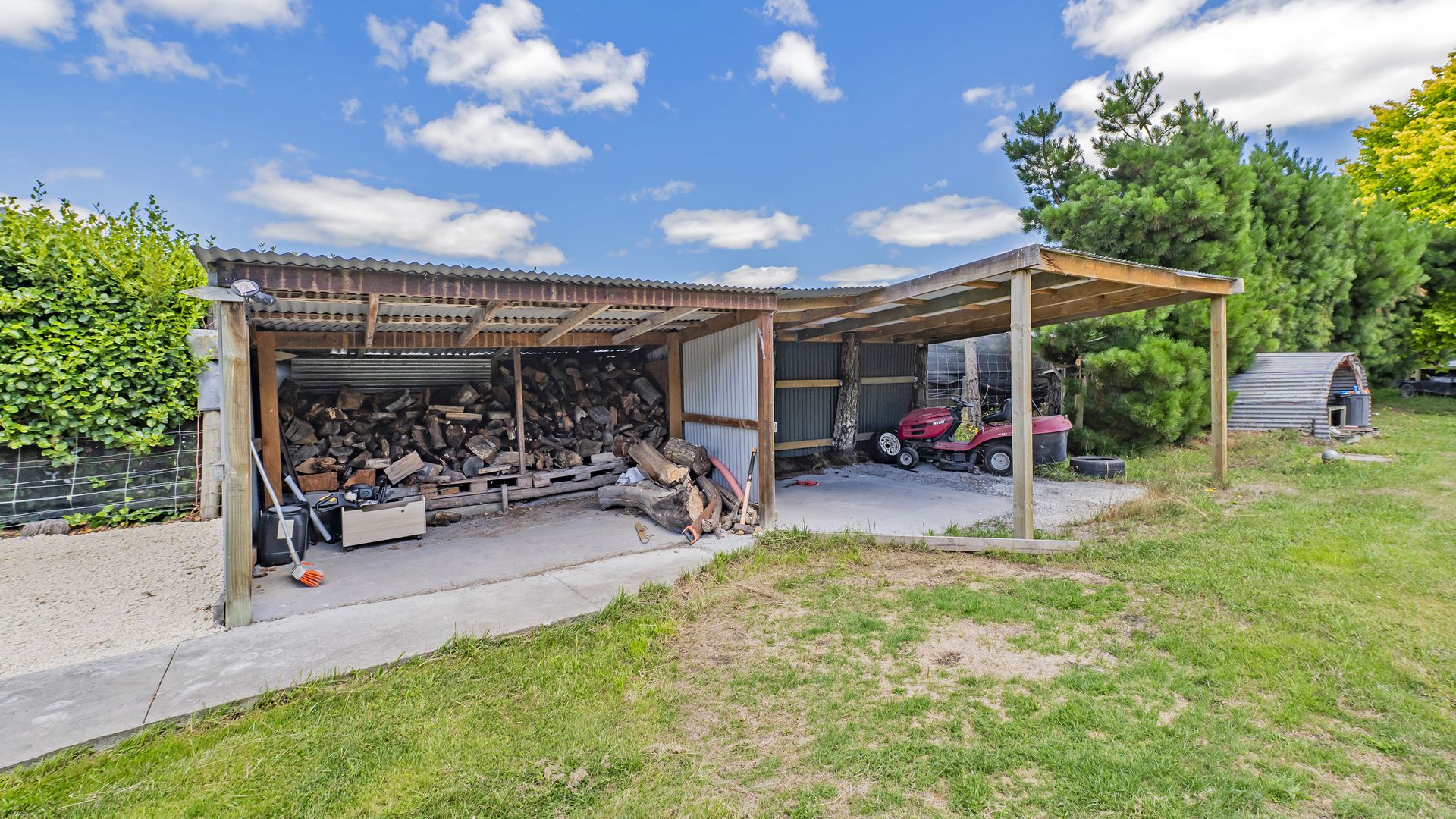 Where this property truly shines is outdoors. The expansive 2,261sqm (approx.) grounds provide established gardens, wide open lawn areas, and plenty of room for kids, pets, or future projects. Practical storage is well taken care of with a three-bay shed (two enclosed bays) plus a woodshed, and there is ample off-street parking for vehicles, trailers, or visiting friends and family.