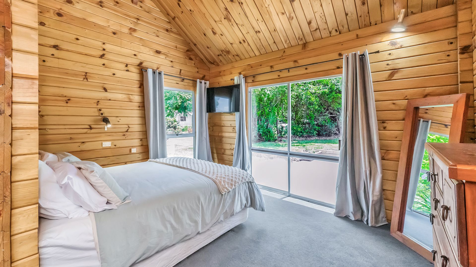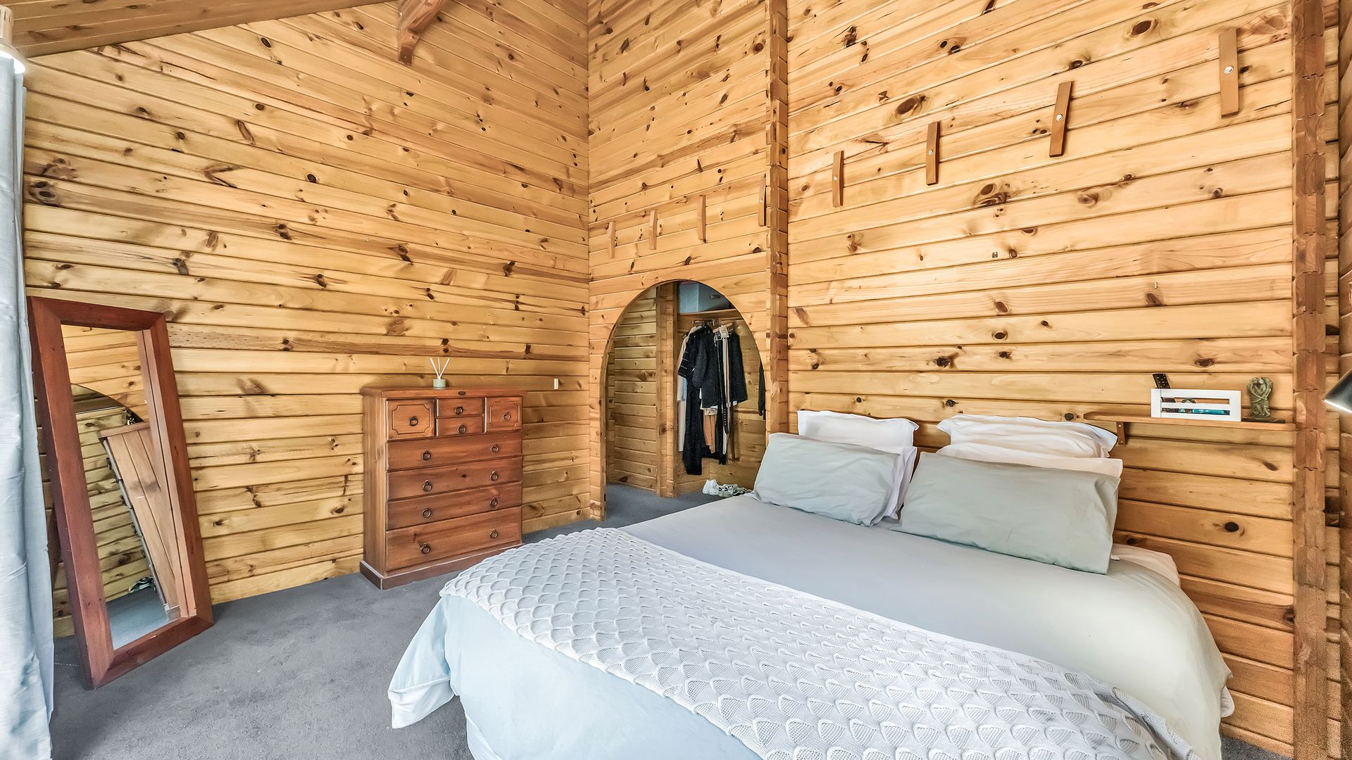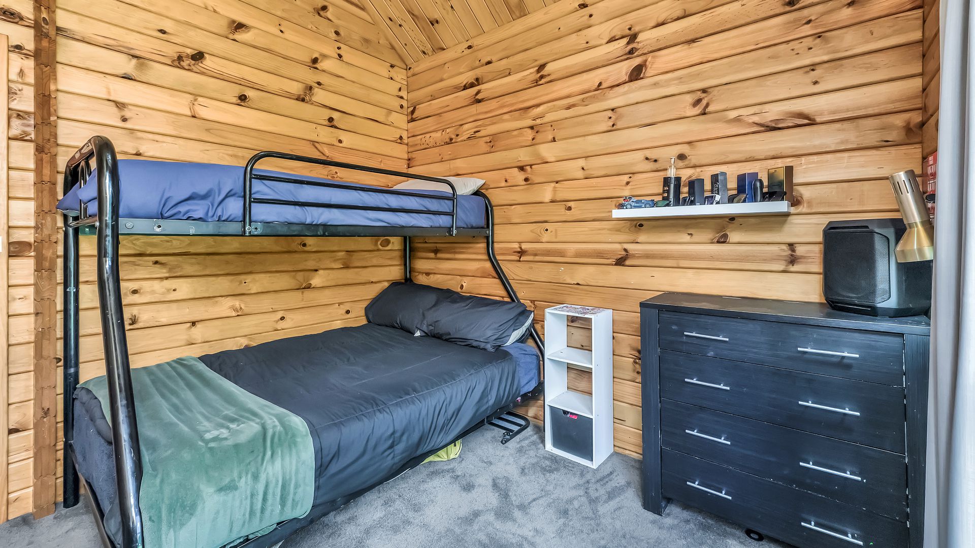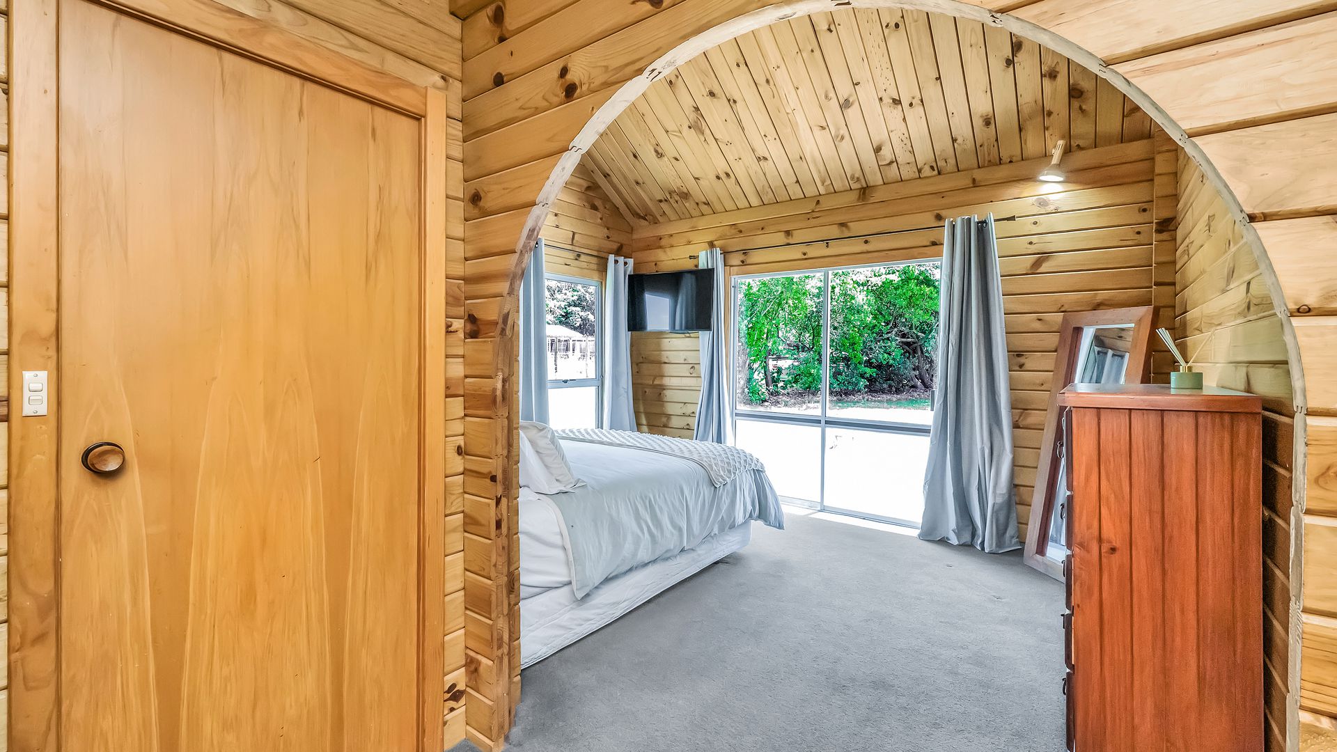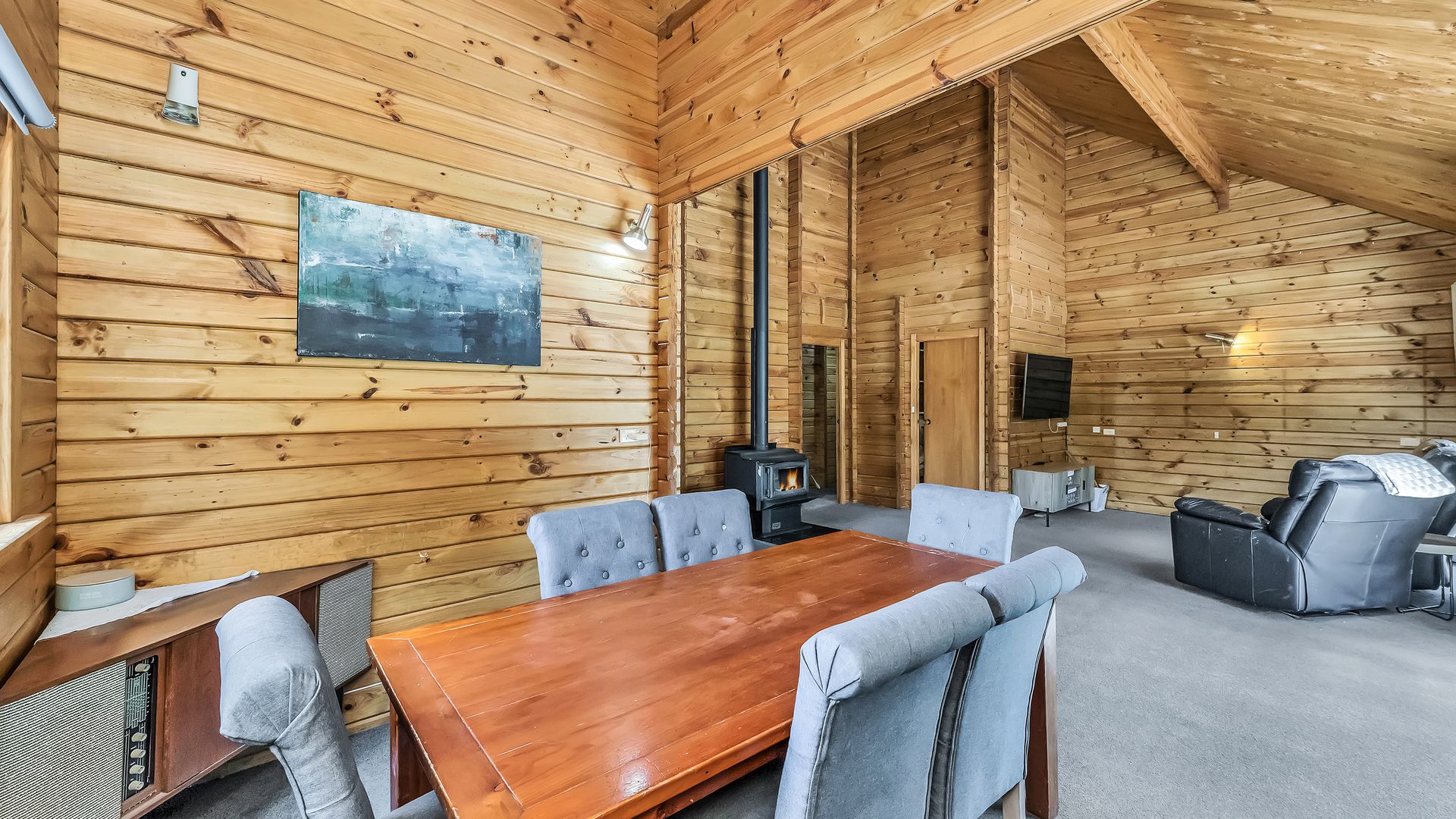 The home itself is comfortable and easy-care, offering a practical layout with a relaxed timber-lined interior. The kitchen sits at the heart of the home and connects to the dining and living area – a cosy, functional space designed for uncomplicated everyday living. A log burner and heat pump ensure comfort through every season.