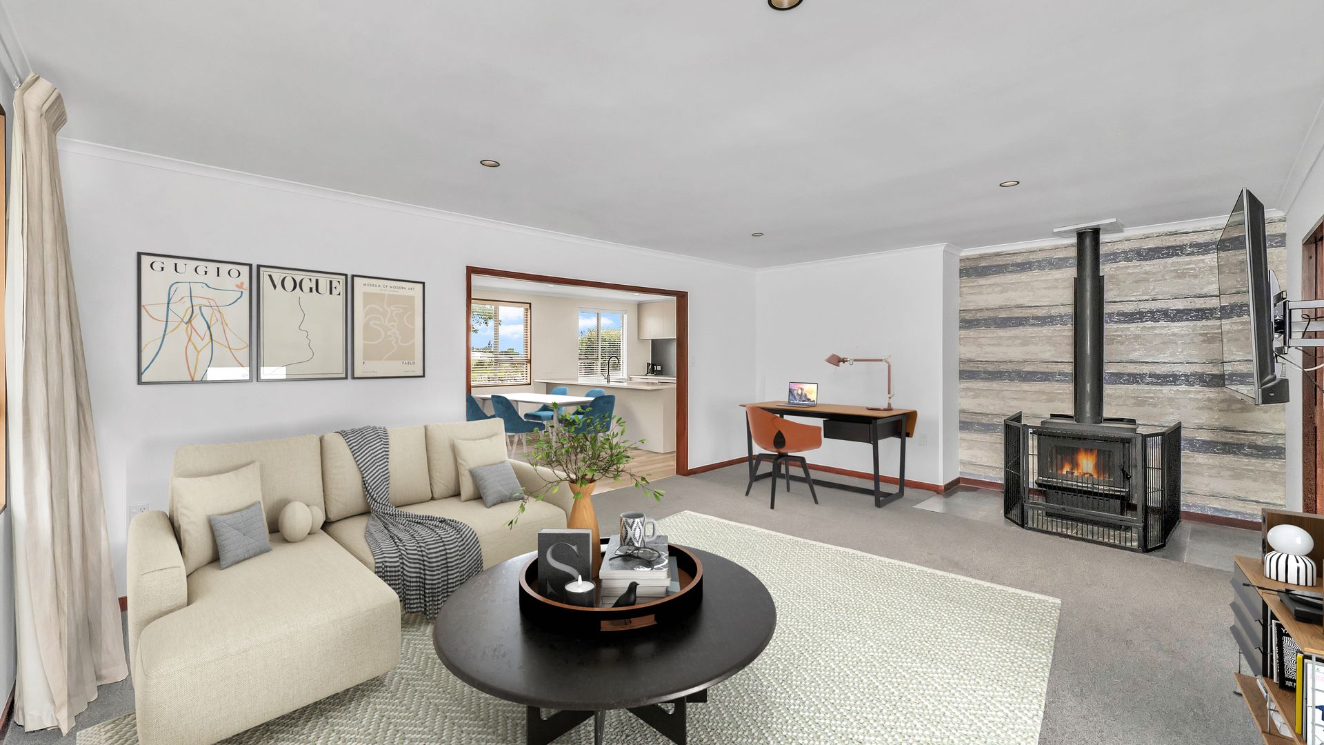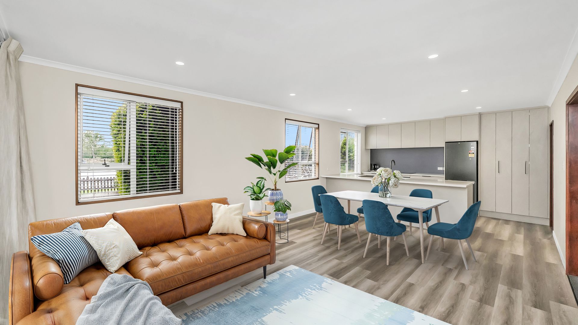 The modern open-plan kitchen sits at the centre of the home, complete with quality appliances and stylish stone benchtops. Thoughtfully designed, it connects effortlessly to the dining and living area, creating a light, welcoming space that works beautifully for everyday living and easy entertaining.